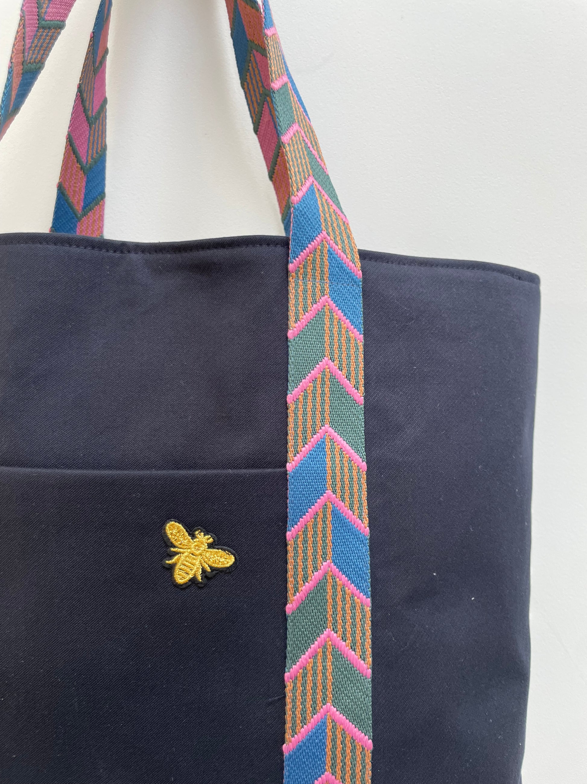 Son format généreux permet d’emporter facilement tous les essentiels : agenda, trousse, portefeuille, gourde ou encore un petit pull.