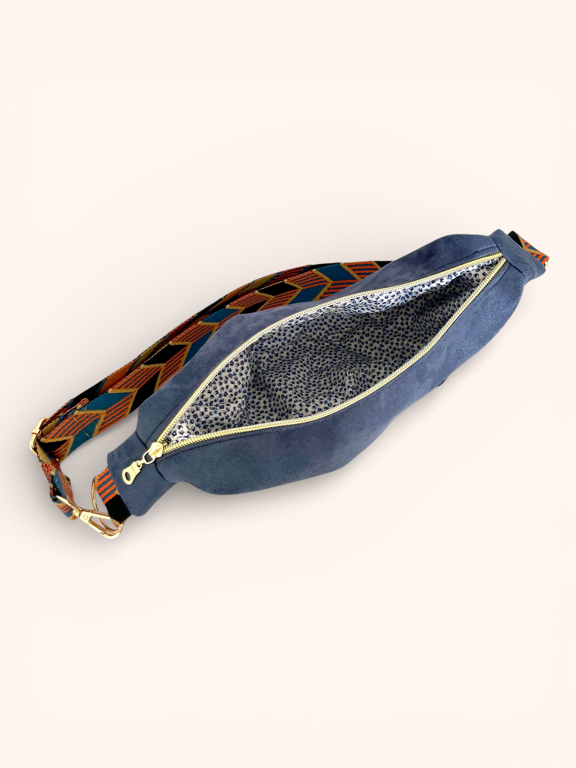 Sac Demi Lune Suédine Bleu