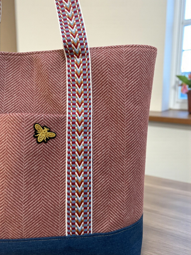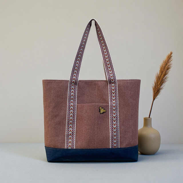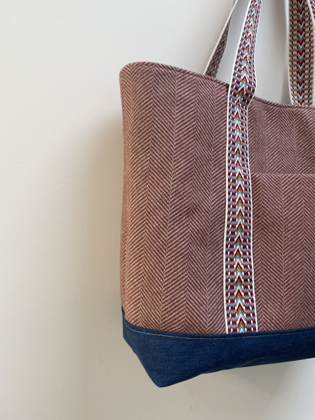 Entièrement cousu à la main dans mon atelier, ce cabas en lainage chevron bordeaux allie chaleur et raffinement.